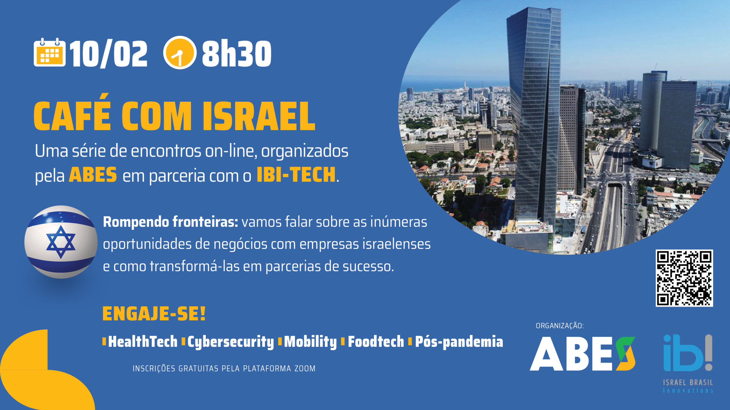E para que você possa conhecer as oportunidades de parcerias nesta potência mundial em inovação e negócios, a ABES e a IBI-Tech, empresa israelense, iniciam a série de encontros virtuais Café com Israel, para mostrar as oportunidades de parcerias neste dinâmico ecossistema empreendedor em diferentes setores, como mobility, foodtech, healthtech, cybersecurity, entre outros.