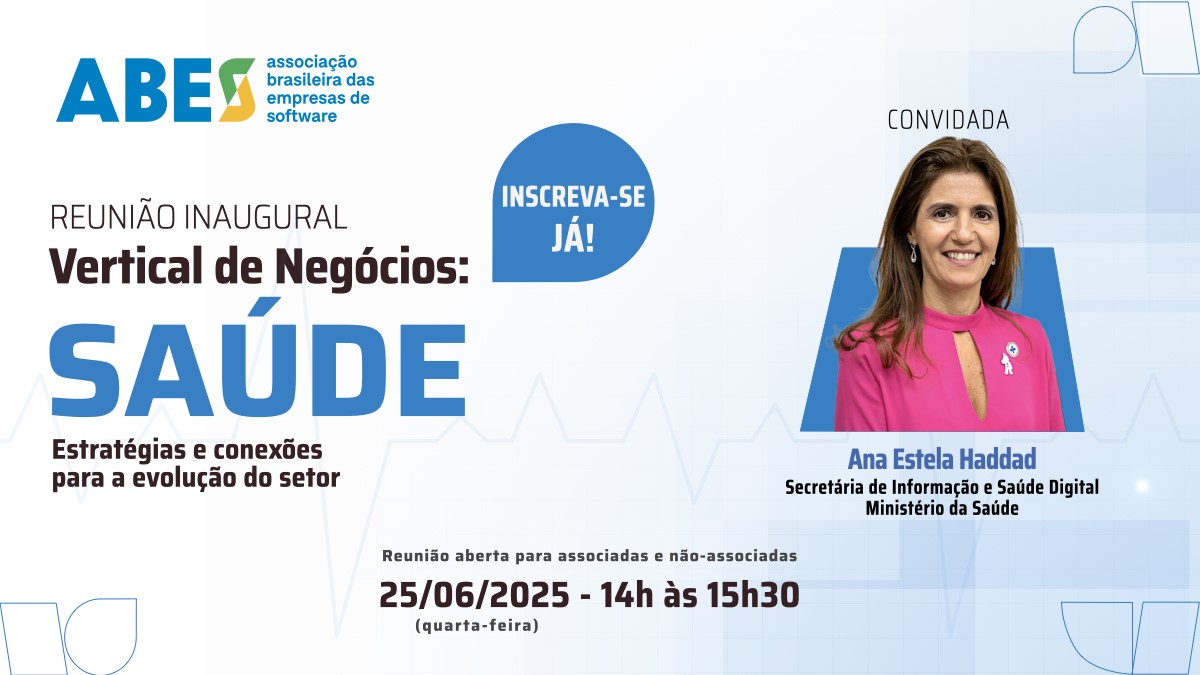 Para marcar o lançamento, a ABES convida empresas associadas e não associadas para a reunião inaugural da vertical de Saúde. Será uma oportunidade imperdível para conhecer o plano de trabalho detalhado da iniciativa e as lideranças que estarão à frente deste projeto promissor. “Este encontro é fundamental para que empresas não associadas à ABES possam compreender como a associação pode ser um parceiro estratégico para o crescimento de seus negócios e para o desenvolvimento de projetos inovadores no mercado de Saúde. Esperamos que elas se unam a nós”, explica Jamile Sabatini Marques, Diretora de Inovação e Fomento da Associação.