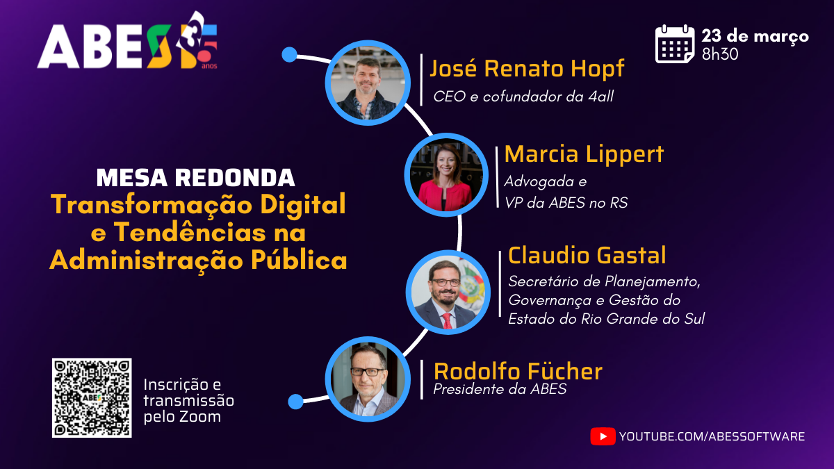 Para debater as questões na Mesa Redonda sobre “Transformação Digital e Tendências na Administração Pública“, agendada para 23 de março, às 8h30, a ABES vai reunir:
