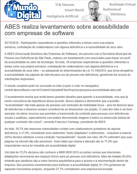 A “Mobilização para redução da desigualdade” é o nome da campanha lançada pela ABES, em parceria com a ReUrbi e o Observatório do Terceiro Setor, com apoio da agência Weber Shandwick. Ela tem como objetivo apoiar projetos de inclusão social que promovam a capacitação na área digital, por meio dos recursos obtidos pela reciclagem de equipamentos de TI (notebooks, PCs, racks etc.) descartados pelas empresas que aderirem ao Programa, que faz a coleta, reciclagem e reinsere os equipamentos na cadeia produtiva.