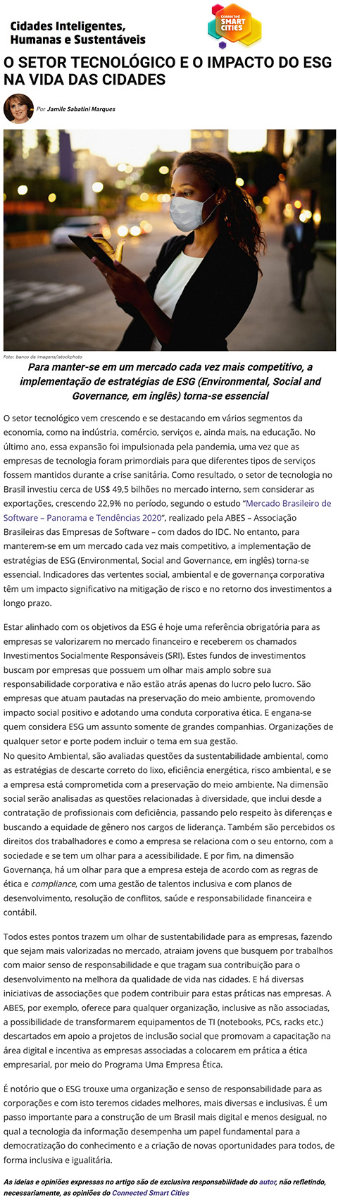 As empresas, inclusive as de tecnologia da informação e de software, têm um papel a desempenhar na sociedade e podem agir a favor da preservação do meio ambiente, da redução da desigualdade, valorização da diversidade e na solução de problemas sociais.