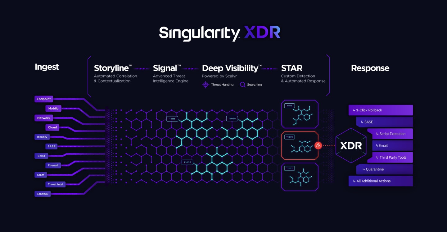 Além disso, a plataforma Singularity XDR, com tecnologia de IA comportamental, da SentinelOne, substitui antivírus tradicionais e de última geração, sistemas de detecção e resposta de endpoint (EDR) e uma variedade de produtos pontuais.