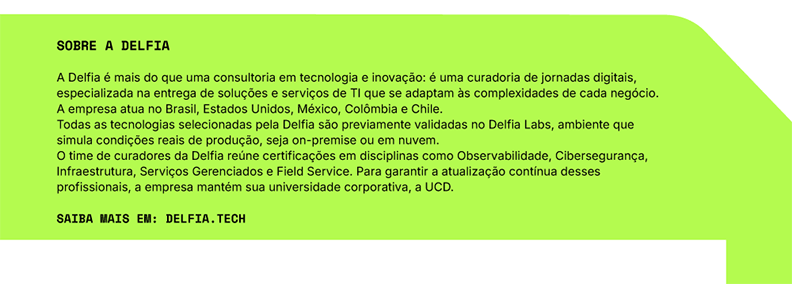A Delfia também prevê para 2026 um investimento de aproximadamente R$ 5 milhões em Pesquisa e Desenvolvimento, direcionado a duas frentes principais: em automação e orquestração de soluções de observabilidade, com apoio de inteligência artificial para tomada de decisão operacional; e em soluções omnichannel com uso de IA generativa, voltadas à automação e tratamento inteligente de chamados.