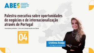 The next day 04 de dezembro, às 9h, a Associação Brasileira das Empresas de Software (ABES) realiza um online event que promete ampliar horizontes para empreendedores brasileiros interessados em expandir seus negócios para a União Europeia. O encontro terá como destaque a Palestra Executiva sobre Oportunidades de Negócios e Internacionalização através de Portugal, conduzida por Cristinna Araújo, CEO da My Euro Business.