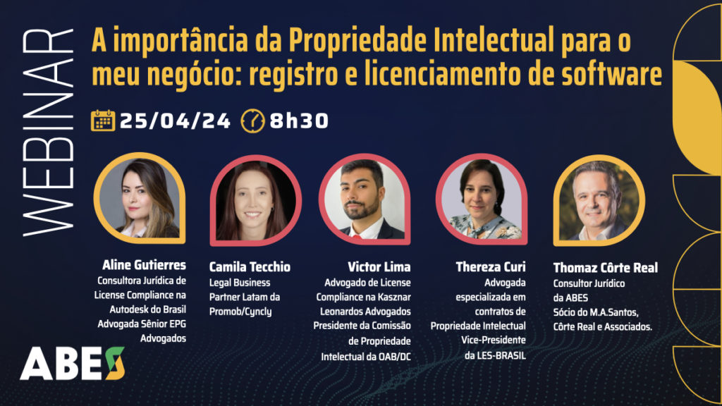 These are some of the questions that will be discussed in the webinar “The importance of Intellectual Property for my business: software registration and licensing”, promoted by ABES, scheduled for 04/25, at 8:30 am, which will have the participation of: