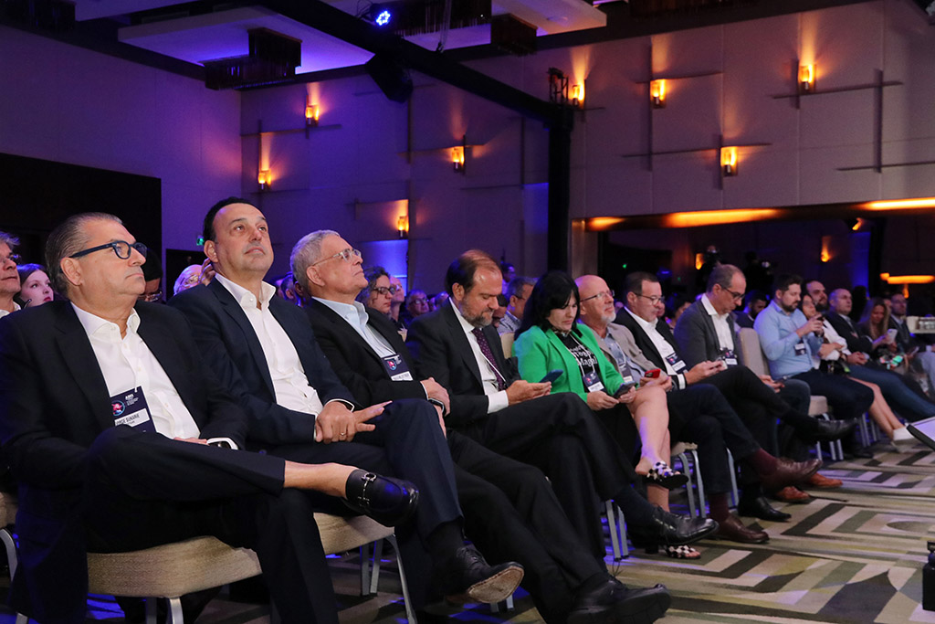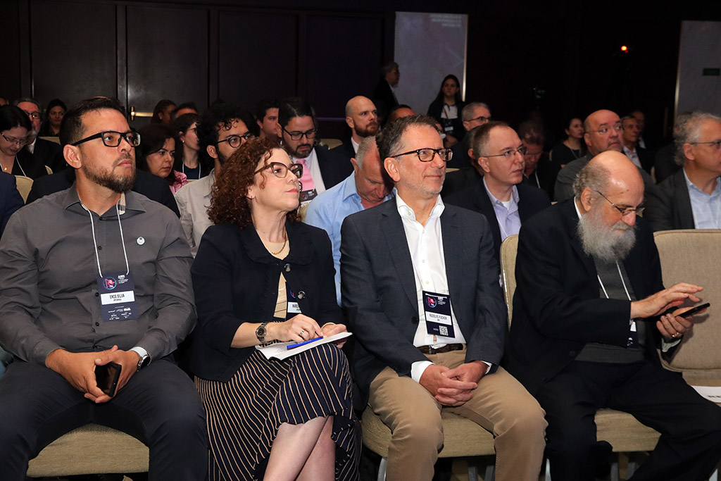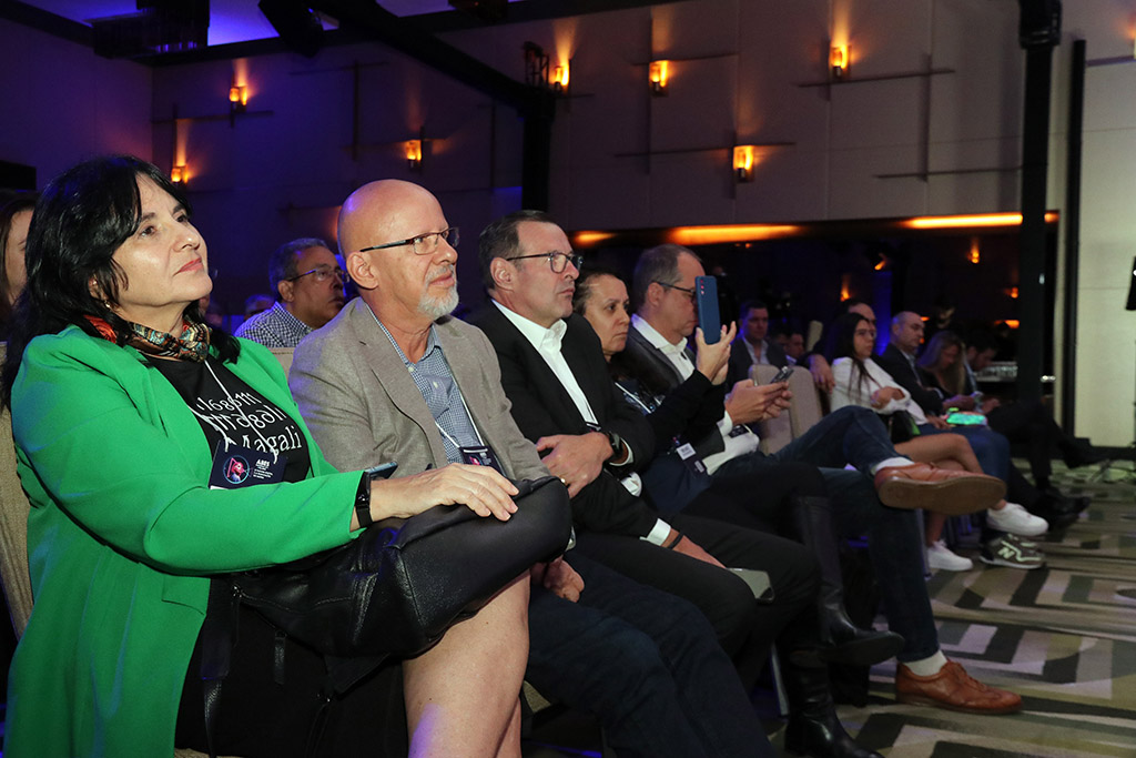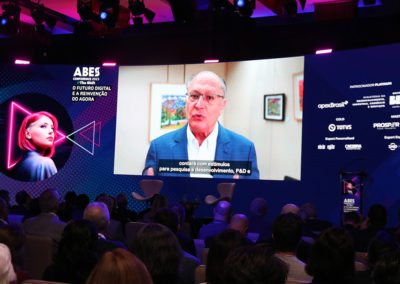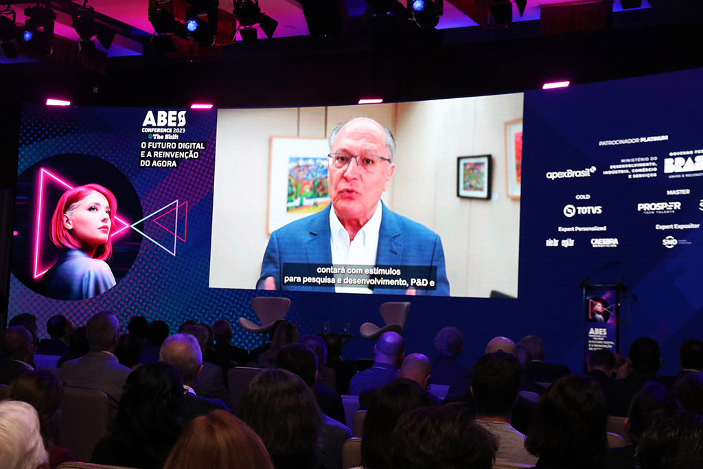 Paulo Milliet Roque (President ABES), Geraldo Alckmin (Vice President of the Republic), Felicio Ramuth (Vice Governor of São Paulo); Gilberto Kassab (Secretary of Government and Institutional Relations of the State of São Paulo); Jose Luis Gordon (Director of Productive Development, Foreign Trade and Innovation at BNDES); Marcia Nejaim (Professional project manager of Sustainability, International Market and Business Strategy at ApexBrasil); It is Demi Getschko (President-Director of NIC.br).
