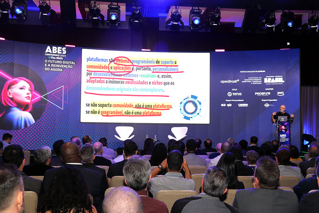 The 2023 edition of ABES CONFERENCE, held in São Paulo on November 6th, had as its central theme “The Digital Future and the Reinvention of Now” and brought together important experts from the innovation ecosystem, artificial intelligence, the future of work, fostering innovation and sustainability in a hybrid and free event, which featured more than 25 leaders in different areas of activity as speakers and aimed to inspire, generate insights and bring trends about digital reinvention to participants. You conference sponsors they were: