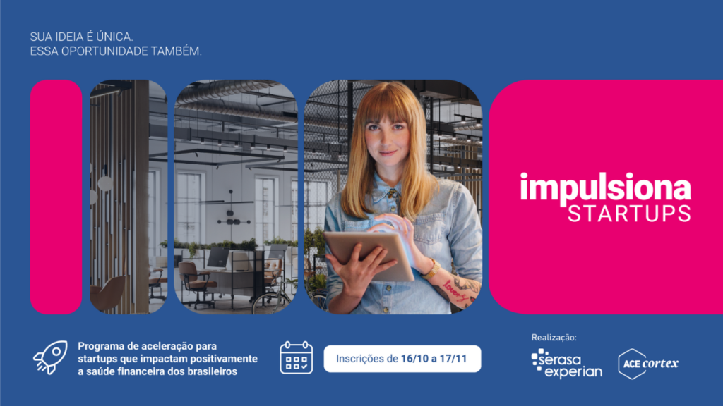 After this first phase, four startups will be chosen based on the best projects and results to undergo 4 months of acceleration with experts from Ace Cortex, executive mentors from Serasa Experian, in addition to receiving an equity-free investment – which does not require corporate obligations. To find out more, check out the official website. Applications can be submitted until November 17th at the link: https://www.serasaexperian.com.br/impulsiona-startups