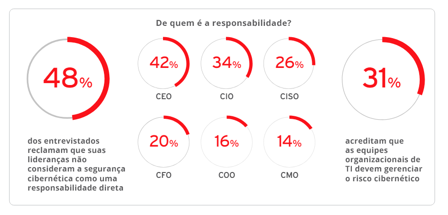 The failure of most global companies to achieve these core cybersecurity principles can be attributed to a lack of leadership and accountability at the top of the organization. Half of the respondents (48%) said their leadership does not see cybersecurity as a direct responsibility, and more than half (54%) complained that their company’s attitude toward cyber risk is inconsistent and varies from month to month.