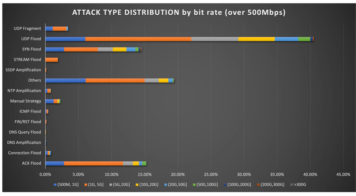 4. NSFOCUS noted that the third quarter of 2022 saw record volumes, accounting for 30% of the total attacks greater than 1 Gbps for the entire year.