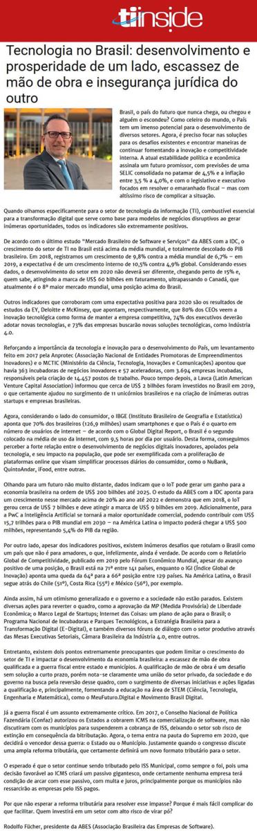 Brasil, País Digital is a movement led by the Brazilian Association of Software Companies (ABES) created in 2016, which has the support of various organizations in society. The objective of the movement is to work for the construction of a Nation Project that is more digital and less unequal, sharing information and promoting the debate on inclusive digital transformation.