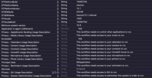 Info.plist reveals that the app was built on a macOS Ventura 13.1 device and targets macOS versions from OS X 10.9 Mavericks onwards. It also requires the user to grant access to the device's camera, microphone, and administrator privileges, as well as data such as contacts, photos, and reminders that would otherwise be protected by the device. TCC.