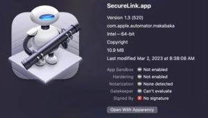 A second Geacon payload appeared on VirusTotal on April 11th. In this case, the payload, fa9b04bdc97ffe55ae84e5c47e525c295fca1241, is incorporating a trojan disguised as SecureLink, an enterprise application for secure remote support.