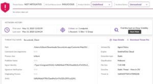 SentinelOne was unable to identify whether this sample is operationally connected to the Xu Yiqing resume.app. But this isn't the first time you've seen a Trojan disguised as SecureLink with an integrated open-source attack framework: a sliver implant was being distributed as a fake SecureLink app in September 2022.