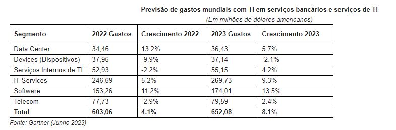 Gartner, the world's leading research and advisory firm, predicts that worldwide IT spending in financial and banking services will reach US$ 652 billion in 2023, an increase of 8.1% from 2022. further growth, with an addition of 13.5% in 2023.