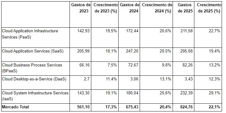 O Gartner, a global leader in research and advice for businesses, announces that global end-user spending on Public Cloud services is expected to increase by 20.4%, totaling US$ 675.4 billion in 2024, compared to US$ 561 billion recorded in 2023. This growth is being driven by Generative Artificial Intelligence (GenAI) and the modernization of applications.