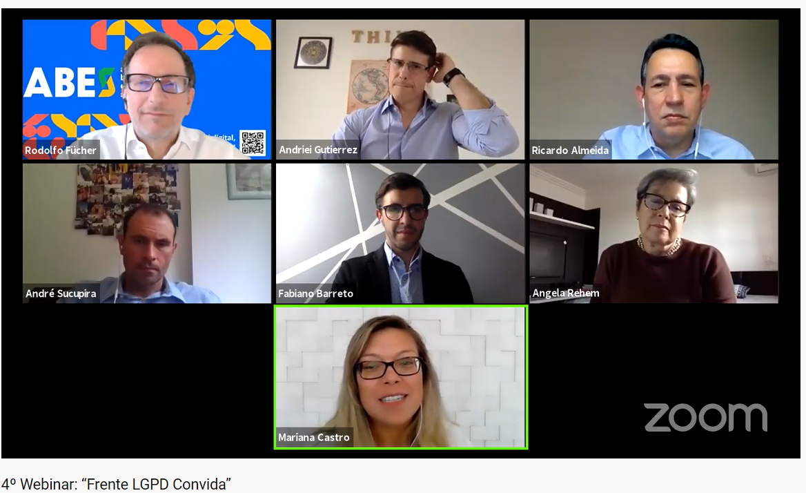 The webinar speakers were: Rodolfo Fücher, president of ABES; Andriei Gutierrez, coordinator of the ABES Regulatory Committee; Angela Rehem, by ABEMD - Brazilian Association of Data Marketing; Fabiano Barreto, by CNI - National Confederation of Industry; André Sucupira, from Serpro; and Ricardo Almeida, spokesman for the National Confederation of Shopkeepers (CNDL) and SPC Brasil. Moderation was conducted by Mariana Castro, for the LGPD Front.