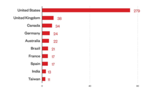 Top 10 countries affected by successful RaaS and extortion attacks in Q4 2022. Source: RaaS and extortion group leak sites and Trend Micro's OSINT (Open Source Intelligence) research.