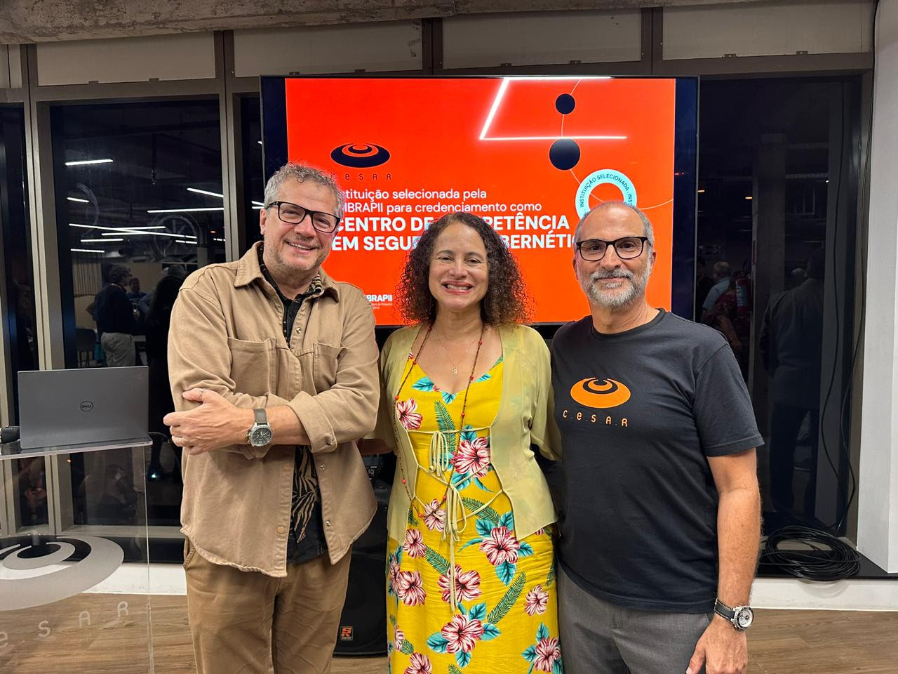 From left to right, Francisco Saboya, president of Embrapii; Luciana Santos, minister of MCTI; and Eduardo Peixoto, CEO of Cesar