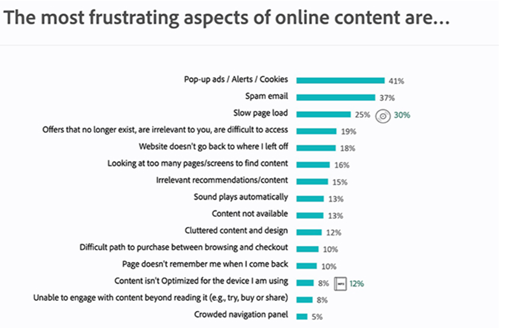 Consumers have also expressed annoyance about certain intrusive experiences, especially pop-up ads, alerts, cookies, spam and slow-to-load pages. While more than half of respondents choose to receive notifications via email or text message, 62% say they use ad blockers on at least one of their internet-connected devices.