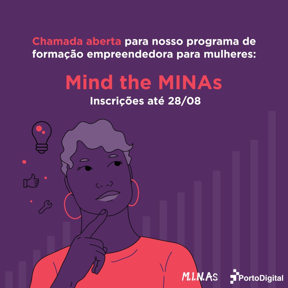 Porto Digital has open enrollment for Mind the Minas, a program that supports the emergence of new innovative businesses undertaken by women, through the Women in Innovation, Business and Arts (MINAs) program, a gender equality initiative in the park, with support Ministry of Science, Technology, Innovations and Communications. Interested parties from all over the country can check the call at the link https://bit.ly/Chamada_MtM2020_2 and enroll in https://bit.ly/MindTheMinas_2020 until august 28.