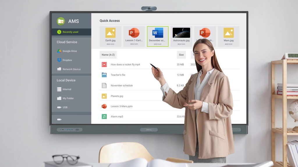 BenQ Boards can be used in a shared way with other devices (such as computers, tablets and smartphones) used by students who attend classes in person or remotely, so that everyone can have the same learning experience. In practice, everything the teacher writes on interactive screens can be recorded in the cloud and passed on in real time to students' devices – who can also access the content after class or at any time. For those physically present in the room, it is possible to plug any device into the smartboards and download the information displayed.