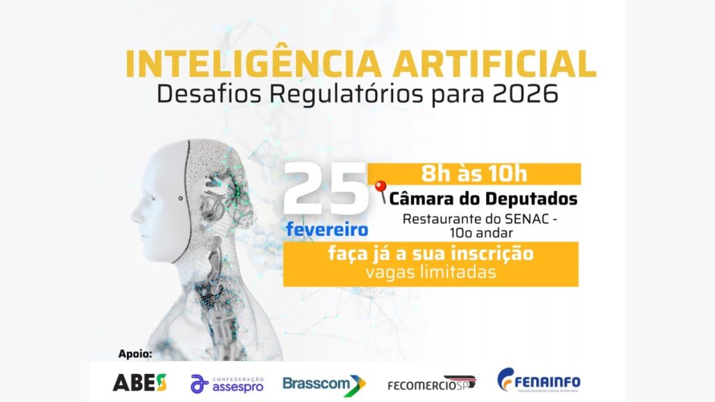 A Deputada Federal Adriana Ventura (NOVO/SP) e a ABES organizam um café da manhã institucional exclusivo em Brasília, no qual serão debatidos os rumos da Inteligência Artificial em 2026 e para os próximos anos. O evento conta com apoio da Brasscom, Confederação Assespro, Fecomércio SP e Fenainfo.