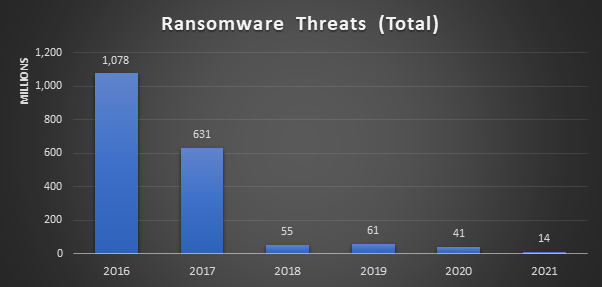 O levantamento confirma a mudança de perfil do ransomware moderno, que deixou de ser massificado e se tornou direcionado, desde 2018, prezando por alvos com maior retorno financeiro. Apesar do ligeiro aumento em 2019, a tendência de queda deve persistir. Em 2021, foram identificados, ao todo, 14 milhões de ataques ransomware em todo o mundo.