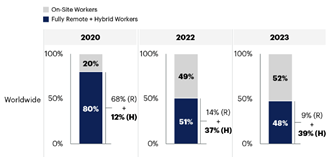 As empresas do Japão estão mais focadas no retorno dos colaboradores ao escritório em tempo integral, se compararmos com outros empregadores ao redor do mundo. O número de trabalhadores japoneses do conhecimento totalmente remotos e híbridos totalizará apenas 29% de toda a força de trabalho em 2023.