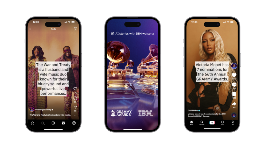 Exemplo de AI Stories com watsonx em canais de mídia social GRAMMYs | Fonte: Divulgação IBM