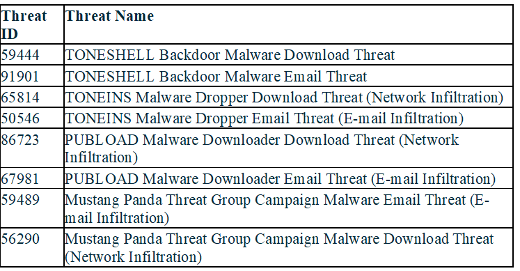 Picus Labs já havia incluído as ameaças para o Mustang Panda. Agora, incluiu ao Picus Threat Library as seguintes ameaças para TONESHELL backdoor, TONEINS malware dropper e PUBLOAD malware downloader: