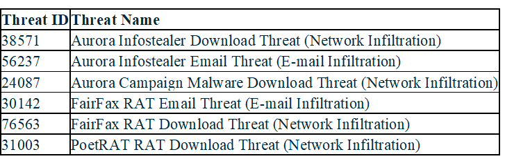 Agora, a Picus Threat Library inclui as seguintes ameaças para o malware Aurora infostealer: