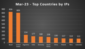 Países mais atacados por ransomware – março 2023