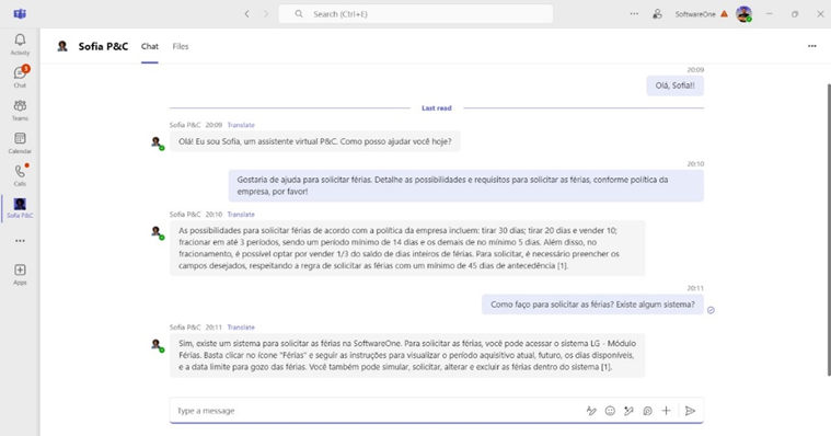 Embora na área de RH a utilização do Copilot esteja mais madura e customizada, outras áreas da SoftwareOne também já têm explorado a tecnologia, como o marketing, para criação de imagens e apresentações, e o jurídico, para análise de contratos.